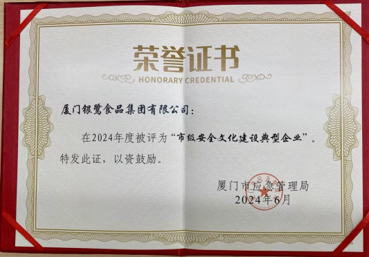 喜訊!銀鷺食品榮獲“市級安全文化建設典型企業”