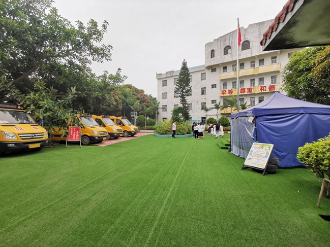 第一站,志愿者們首先來到了翔安區(qū)特殊教育學校,美麗的綠地,整潔的校車與教學樓,令人眼前一亮。
