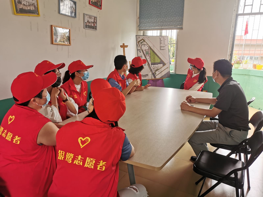 (圖為 校長為志愿者介紹學校現(xiàn)狀)