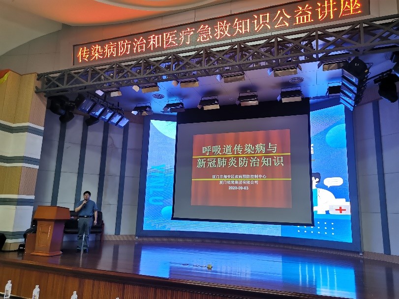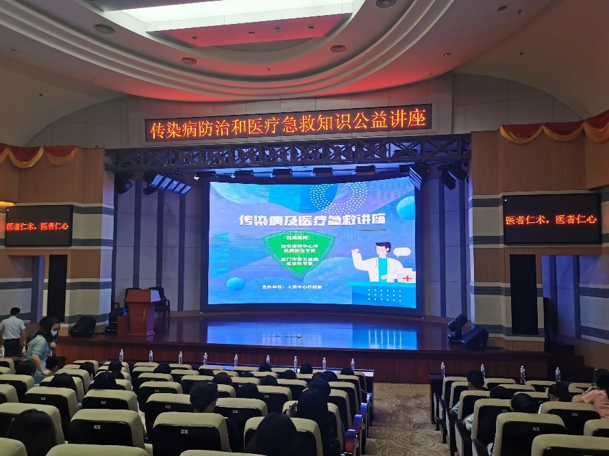 講座于9月2日下午在總部3F大禮堂進(jìn)行,翔安區(qū)疾控中心傳染病防治專家葉醫(yī)師、廈門市第五醫(yī)院急診科張護(hù)士及其團(tuán)隊(duì)為大家授課。